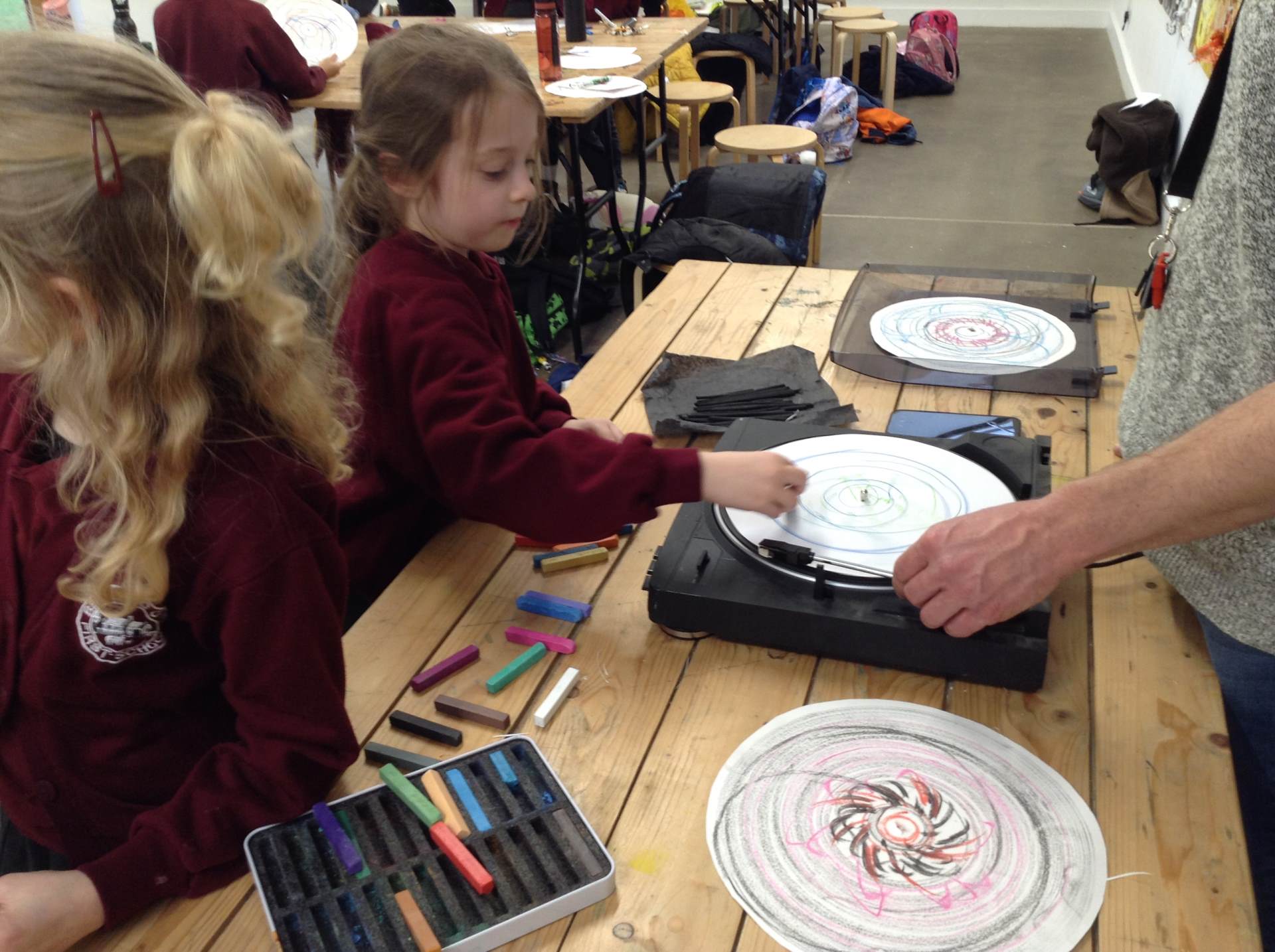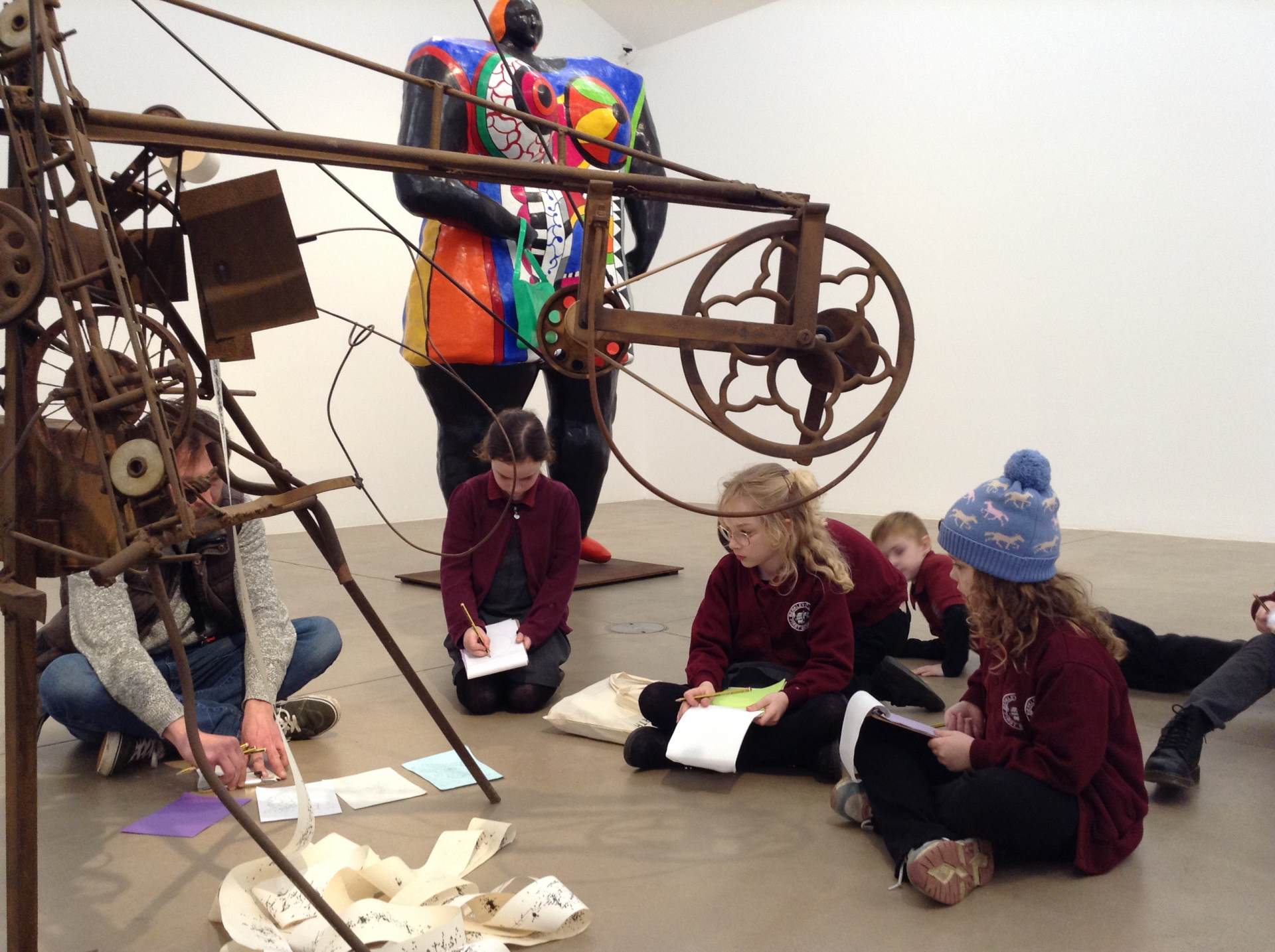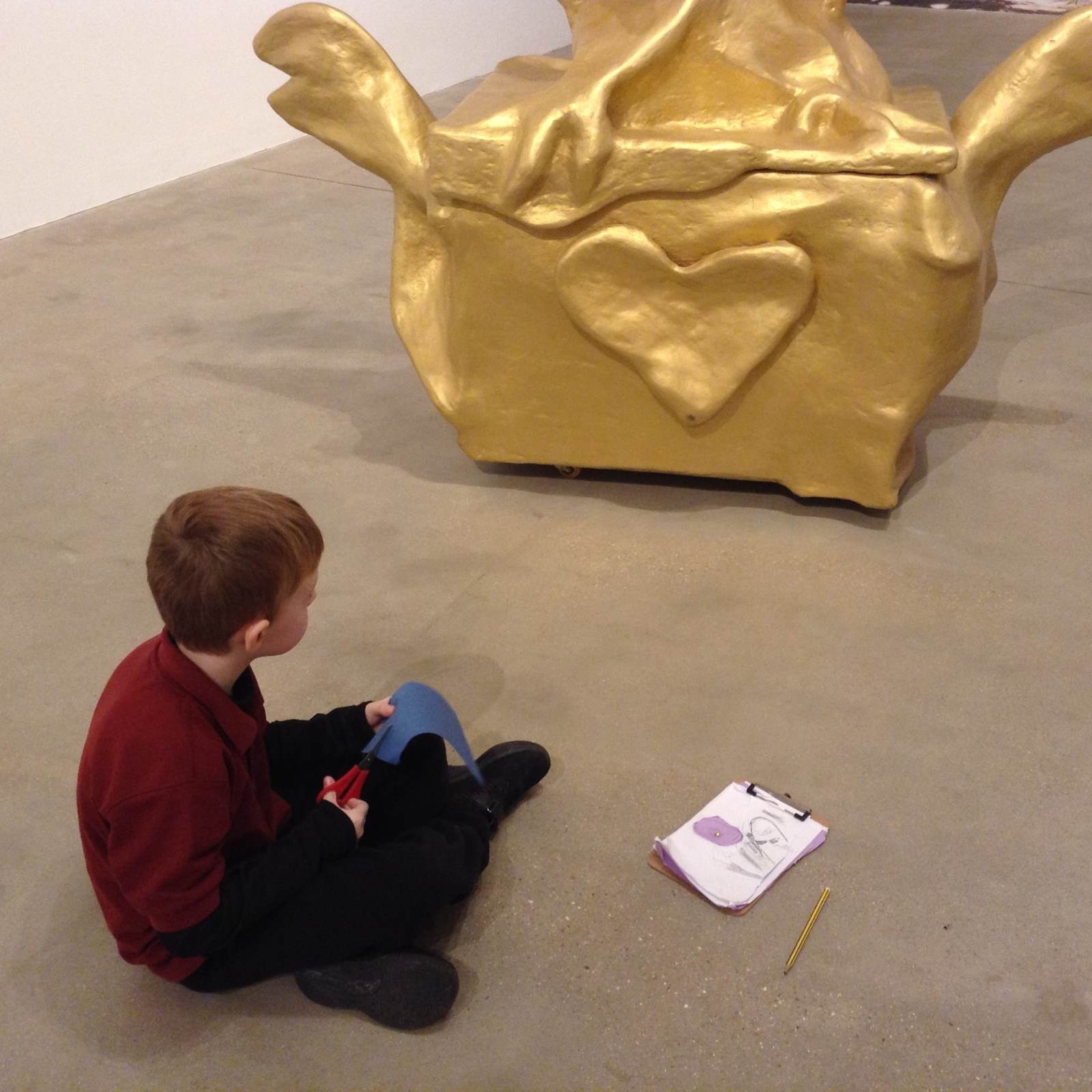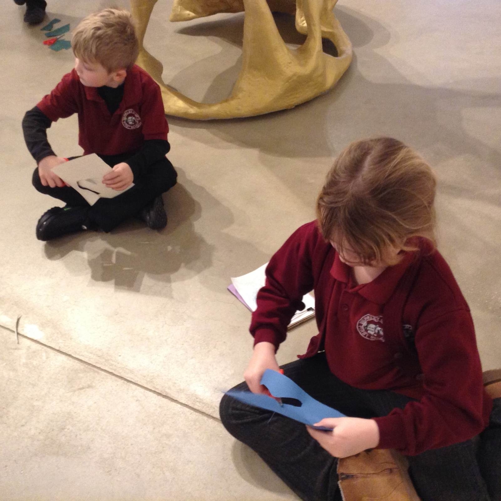 Owls had an amazing day visiting Hauser and Wirth Art Gallery! Our adventure began by travelling to Bruton by train and then walking to the gallery. Eventually we arrived and looked at the work of two artists, Niki de Phalle and Jean Tinguely.  Niki de Saint Phalle and Jean Tinguely were pioneering artists who worked in collaboration with each other. Tinguely became known for his moving sculptures, termed ‘Métamatics,’ which were mechanical constructions. Niki de Saint Phalle gained widespread recognition for her ‘Nanas’ which were large-scale, brightly colored sculptures of female figures that celebrate femininity. The children looked at the artwork and created line drawings of both the ‘Nanas’ and Tinguely’s mechanical sculptures. The children loved the artwork, especially the glass mosaic skull and the gold bed. Later that afternoon, Owls had fun making spin pictures on a record deck and creating drawings using an electric toothbrush, masking tape and felt-tips! At the end of the day, Owls braved the wet weather, walked back to the station and returned home again by train. It was brilliant!
