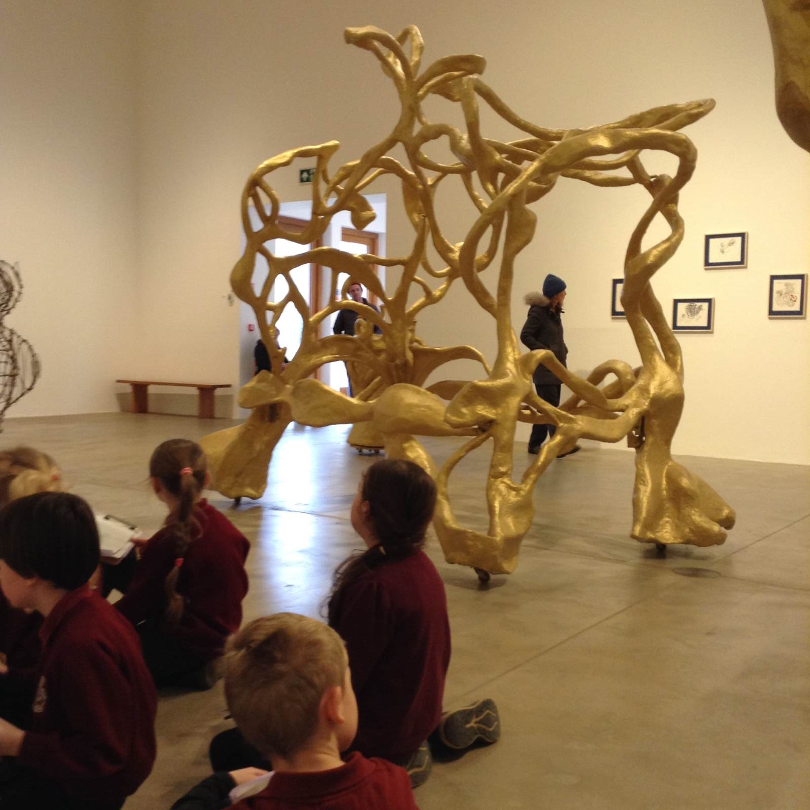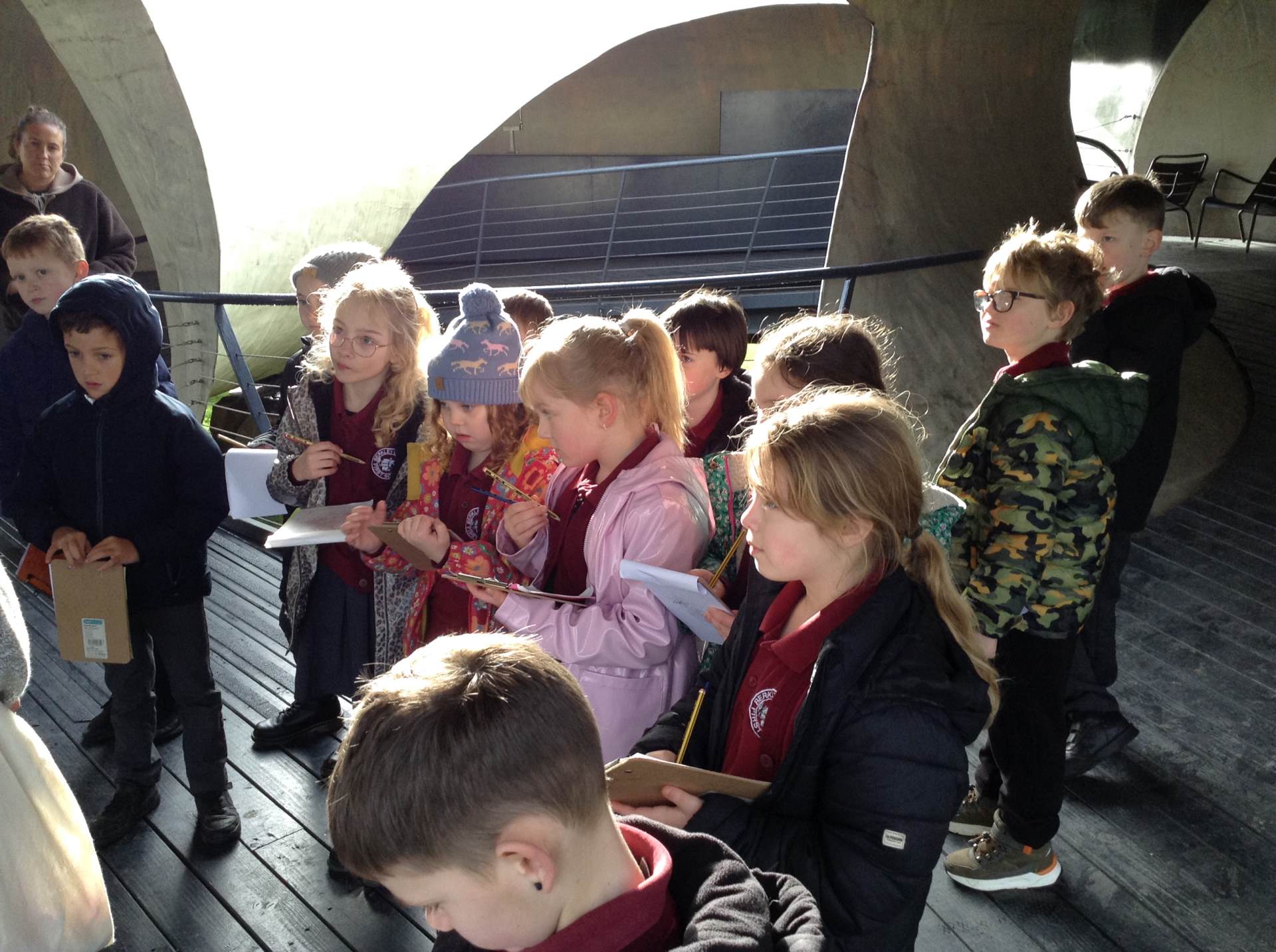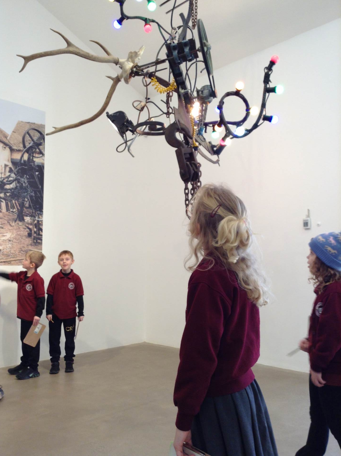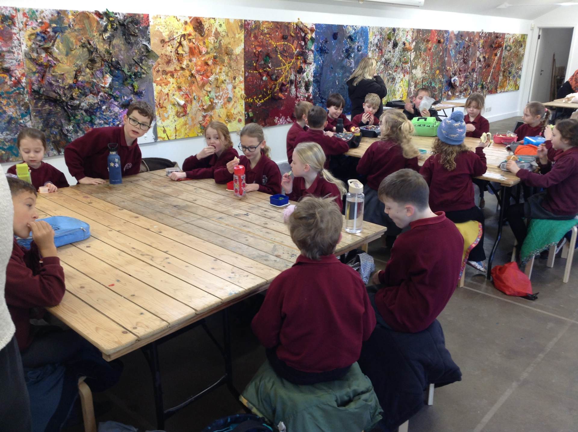 Owls had an amazing day visiting Hauser and Wirth Art Gallery! Our adventure began by travelling to Bruton by train and then walking to the gallery. Eventually we arrived and looked at the work of two artists, Niki de Phalle and Jean Tinguely.  Niki de Saint Phalle and Jean Tinguely were pioneering artists who worked in collaboration with each other. Tinguely became known for his moving sculptures, termed ‘Métamatics,’ which were mechanical constructions. Niki de Saint Phalle gained widespread recognition for her ‘Nanas’ which were large-scale, brightly colored sculptures of female figures that celebrate femininity. The children looked at the artwork and created line drawings of both the ‘Nanas’ and Tinguely’s mechanical sculptures. The children loved the artwork, especially the glass mosaic skull and the gold bed. Later that afternoon, Owls had fun making spin pictures on a record deck and creating drawings using an electric toothbrush, masking tape and felt-tips! At the end of the day, Owls braved the wet weather, walked back to the station and returned home again by train. It was brilliant!